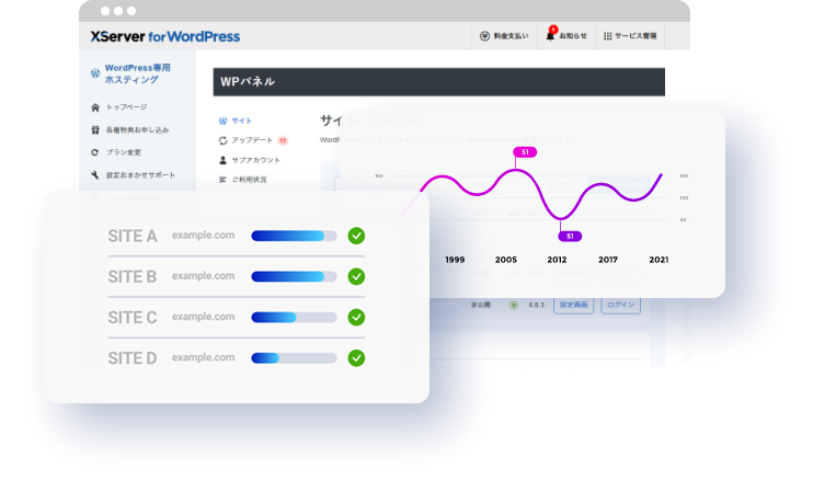 高速でセキュアなインフラと充実のサポートで、安心のサイト運営を。